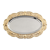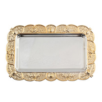 ถาดเสิร์ฟทรงสี่เหลี่ยมสีทองและสีเงินถาดสำหรับตกแต่งหรูหรา