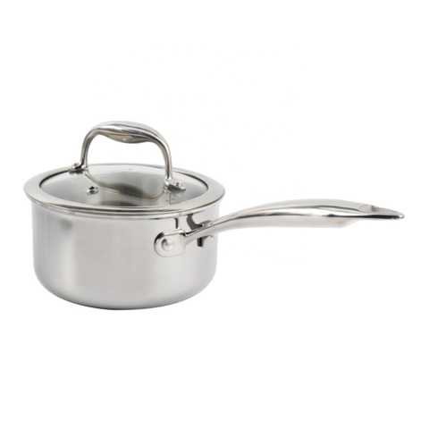 Paslanmaz çelik üç katlı tencere 16 cm (1.5 Ltr) serin kolu + havalandırmalı cam kapaklı